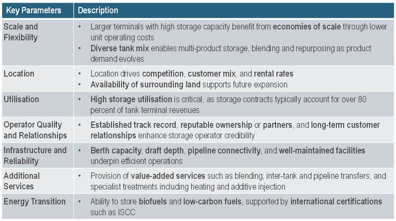 Independent storage is a commodity-type business where differentiation is difficult. Key parameters that may indicate competitive advantage of an operator are listed in Table 1 below: