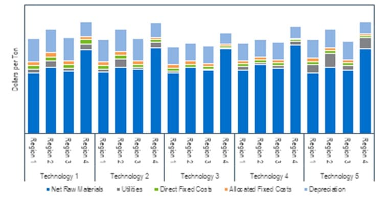 Detailed cost of production estimates for the five PDH technology offerings are presented in this report under a typical world scale design basis. Regional production economics and investment analysis are provided for investments made in Western Europe, Middle East, China, and United States.